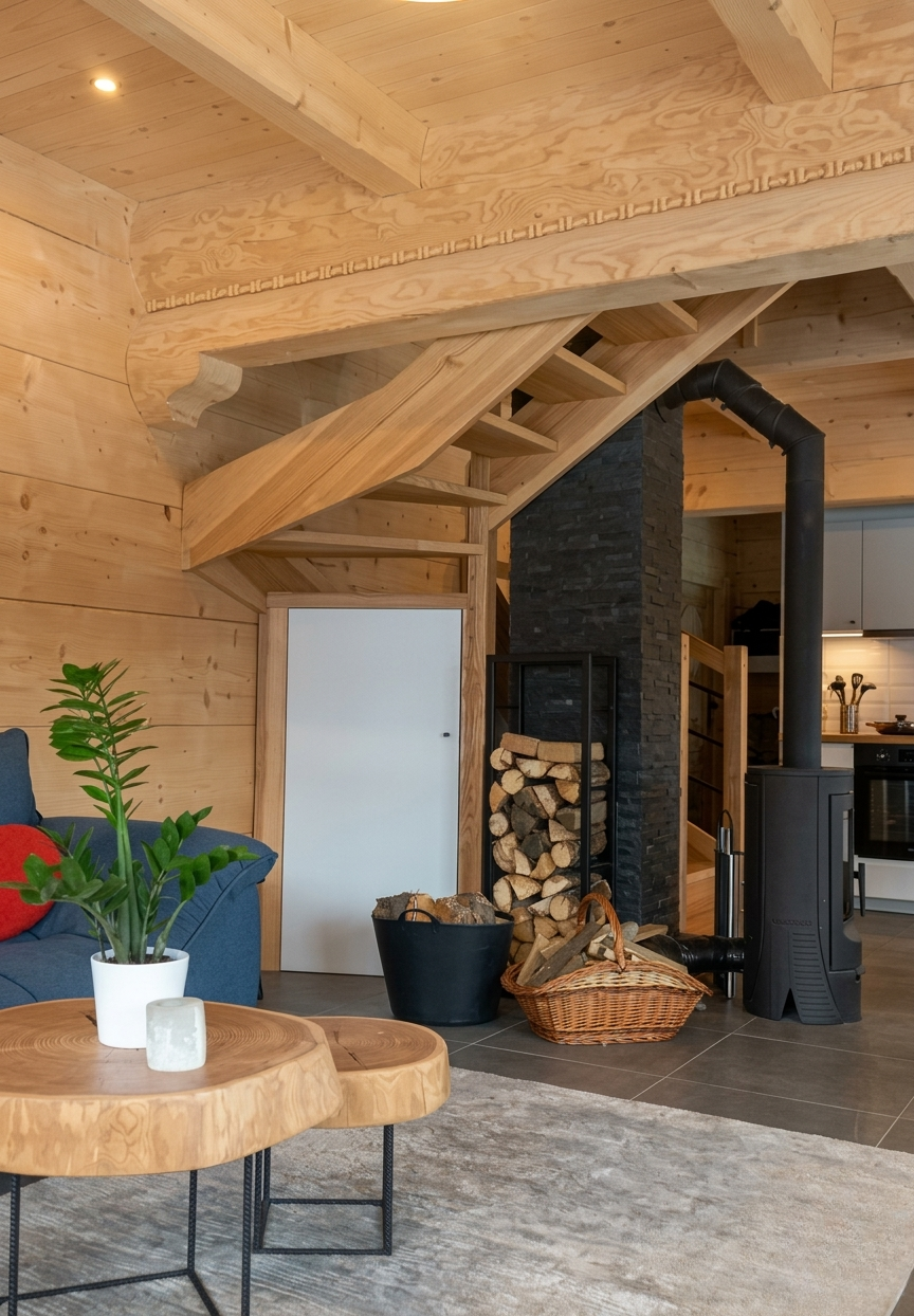 Domek łączy naturalny klimat drewna z nowoczesnym wyposażeniem, zapewniając wygodę przez cały rok.